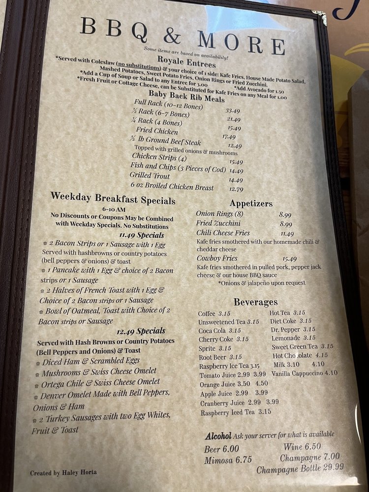 Welcome to Kafe Royale, a delightful gem situated at 1007 Calimesa Blvd, Calimesa, CA. This American breakfast and brunch haven is perfect for those seeking comfort food in a casual setting. The ambiance strikes a balance between a cozy diner and an inviting bistro, with outdoor seating that enhances your dining experience.